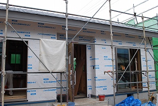 2015年7月3日 新築注文住宅の工事状況 新築工事の状況です。 今日 外壁下地の透湿防水シート検査を受けました。 朝一に検査結果は適合いただきましたので すぐに外壁下地胴縁の施工に入り、 早く外壁サイディングが施工出来る様進めます。