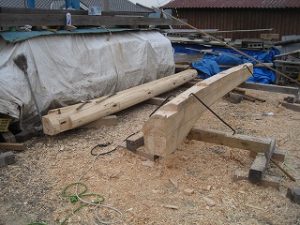 2015年7月3日 注文住宅の工事着工 地鎮祭も執り行い 基礎工事の着工準備に入ります。 給排水配管の敷地引込み工事を先行で入りました。 作業場では構造梁の墨付け・刻み加工も進めています。 来週から桧柱の加工を始めます。 建前・上棟まで、まだまだ作業は かなり多くありますが 一つづつ・・一歩一歩・・・着実に進めていきたいと思います。