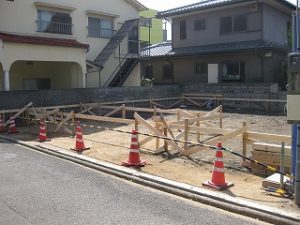 早出で松山の現場で基礎工事の