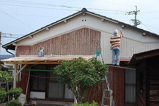 2016年7月21日 外壁の塗り替え 外壁の塗り替え工事に入りました。 今年は梅雨が長雨で塗装業者さんが 仕事の段取りなど大変苦労しておりましたが、 梅雨明けもして天候も晴れ間が続きそうなので 外壁の塗り替え工事の着工です。 外壁の傷んだ部分は大工施工で修繕して 塗装を行います。
