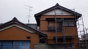 2023年2月28日 外壁の張替え工事 【 外壁の張り替え工事 】 外壁の張替え工事を行っています。 工事用仮設足場を設置 外壁を部分的に剥がし 透湿防水シート張りを行います。 木製の窓はアルミサッシへ取替え 檜の無垢板を作業場で自社加工を行い 桧板は事前に浸透性塗料を着色します。 現在 現場で壁下地を行っています。 外壁腰板のいろいろな部材も手加工しながら 現場と並行して進めております。
