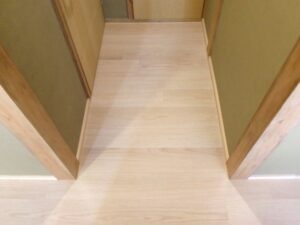 今回は既存フローリング面の上から合板を