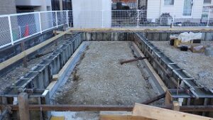 ベース配筋のコンクリート打ち