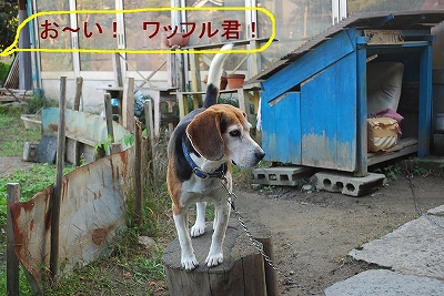 2012年12月5日 僕の現場の友だち候補!! 今 現場で仕事している庭には ビーグル犬 ”ワッフル” くん が住んでいる 打合せの時から ちょくちょく ”ワッフル”くんに声を掛けているのだが・・・ おい ワッフルくん 今だに。。。 目を合わせてくれない 僕に興味はありそうなんだが・・・ たぶんね きっと!! 友だちになれると思うんだ